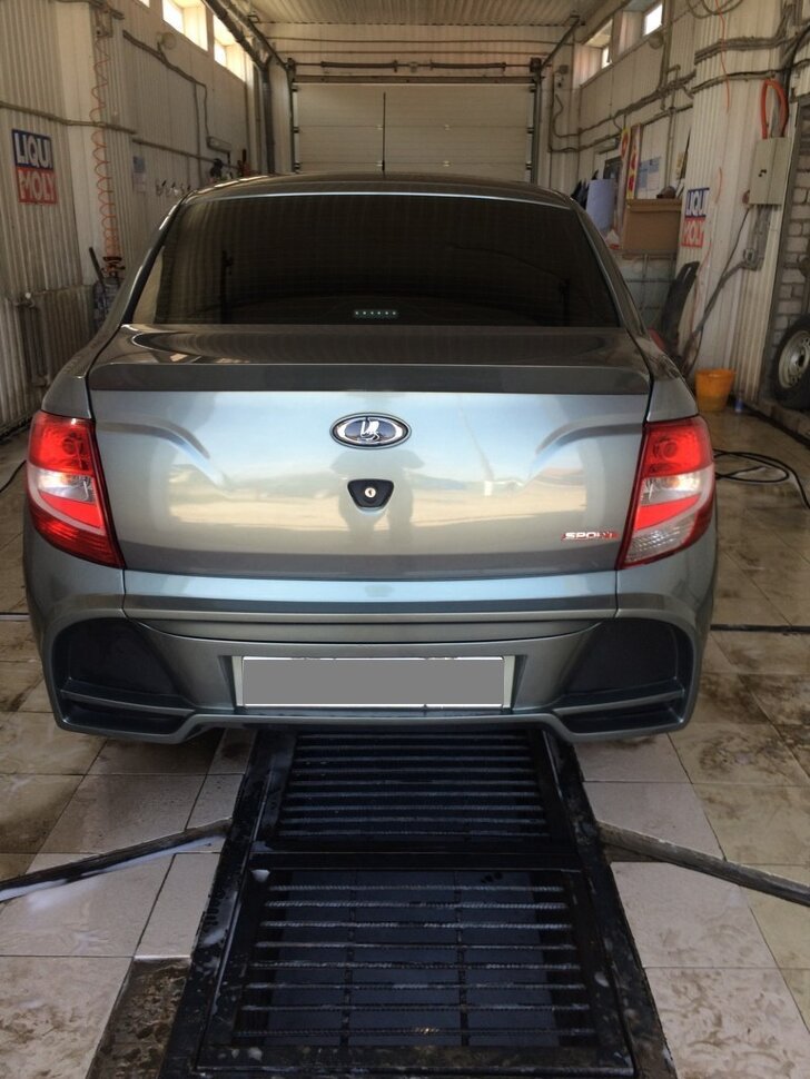 Бампер стеклопластиковый задний с накладкой на крышку багажника "AVR" Лада Гранта