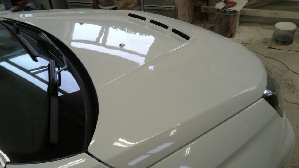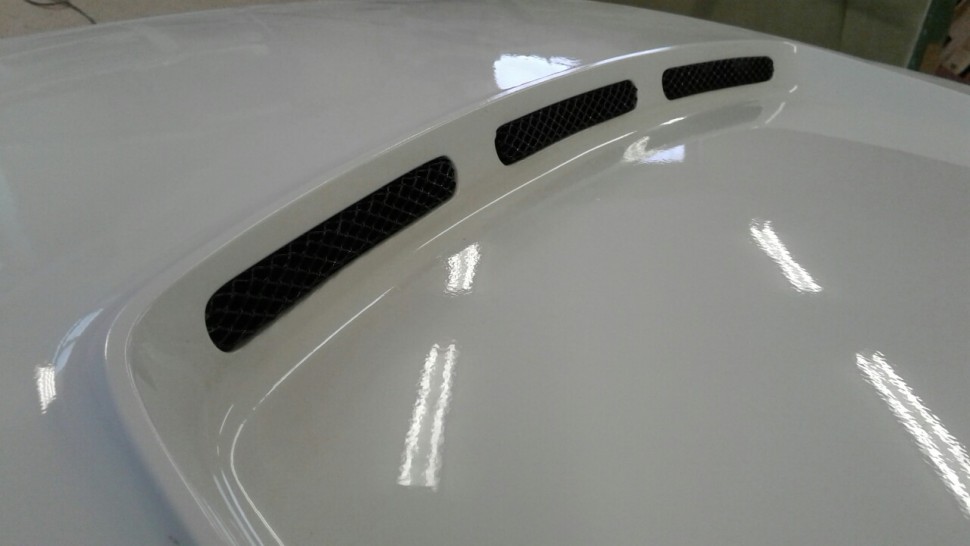 Капот стеклопластиковый со сквозными вентиляционными отверстиями и водостоком "AVR" (Вариант 2) Лада Веста (под окраску)