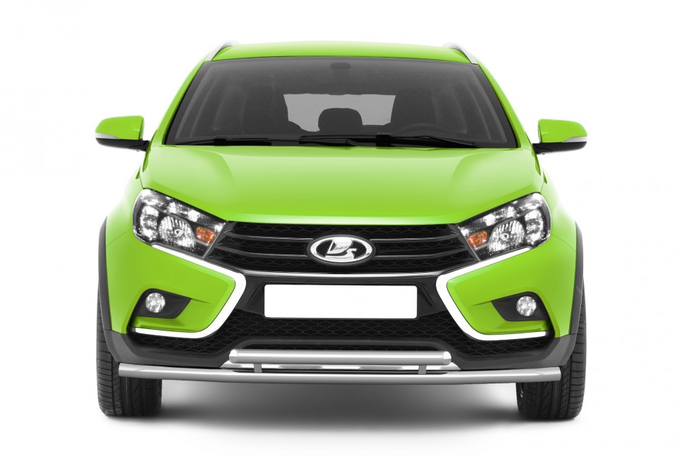 Защита переднего бампера служит для его защиты при движении на малых скоростях и при парковке, а также улучшает внешний вид авто. Защита переднего бампера двойная из нержавеющей стали на LADA Vesta SW Cross изготавливается из стали марки AISI 304, полируемой до зеркального блеска. Крепление защиты производится на силовые кронштейны без сверления кузова.УСТАНОВКА ДВОЙНОЙ ЗАЩИТЫ ПЕРЕДНЕГО БАМПЕРА