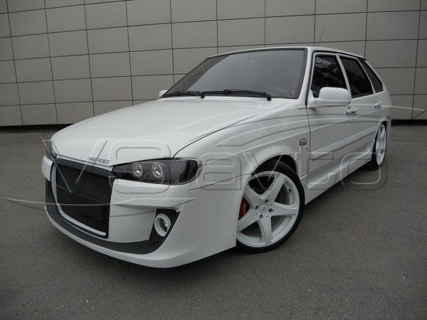 Агрессивный бампер обладает множеством выразительных деталей, создающих эксклюзивный образ автомобиля. Продуманная система распределения воздуха и очень хорошая аэродинамика преимущественно выделяет данный бампер среди других. Крупный воздухозаборник моментально бросается в глаза и оставляет приятные впечатления. Именно благодаря такой детали двигатель получает достаточное количество охлаждения. Такой бампер особенно оценят любители быстрой езды. Массивная нижняя юбка добавляет мощности внешнему облику и играет большую роль в захвате необходимого воздушного потока. Плюс ко всему юбка выступает в качестве дополнительного ребра жесткости и защищает бампер от небольших повреждений. Все в обвесе Я-робот продумано до мелочей, даже противотуманные фары участвуют в создании дополнительного освещения в условиях плохой видимости (ПТФ ВАЗ 2170 Приора). Установка данного бампера меняет облик привычного автомобиля в корне, увеличивает его объемы и создает неповторимый образ, который мало кого оставит равнодушным.ПТФ в комплект не входит.
