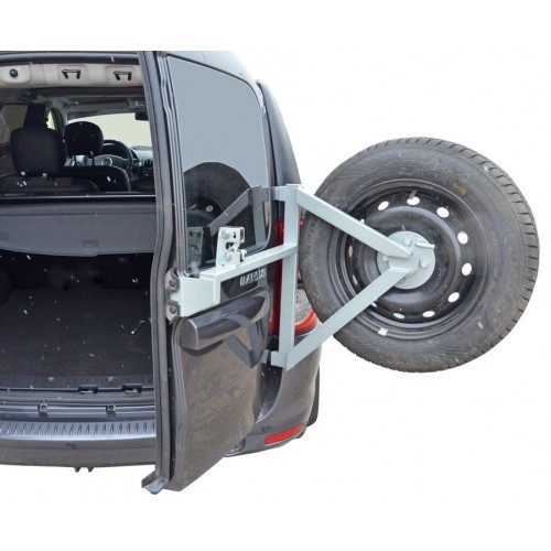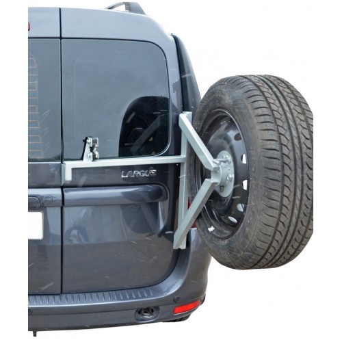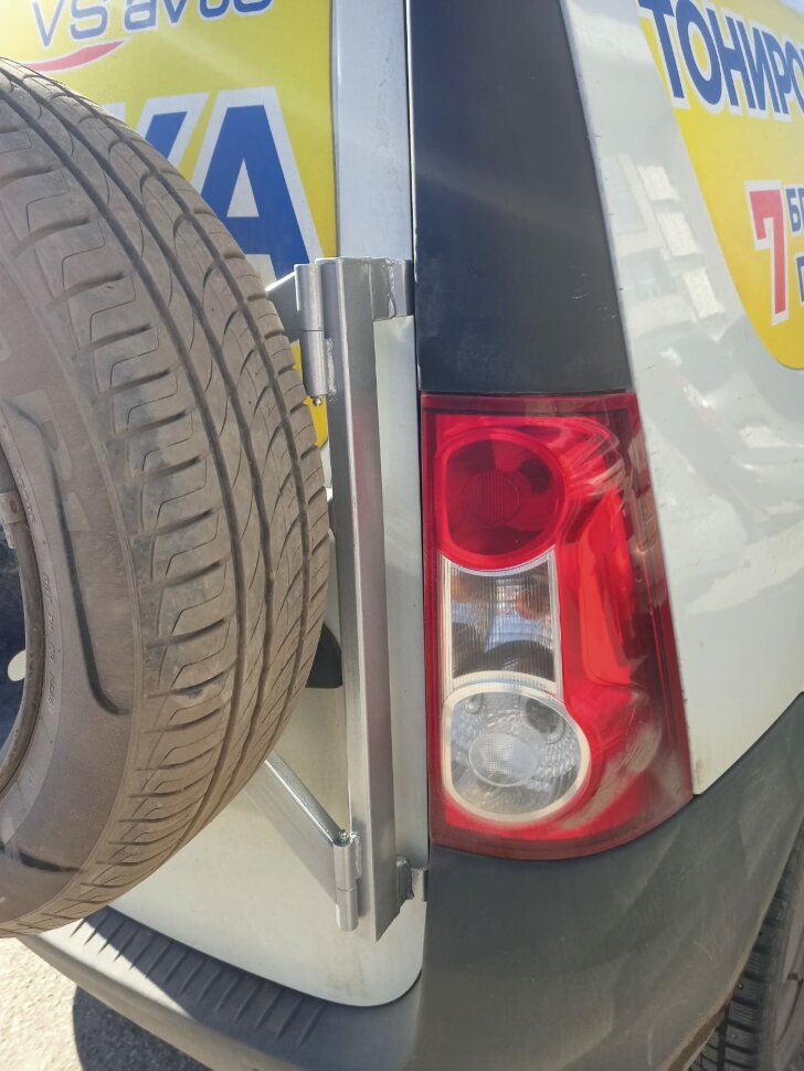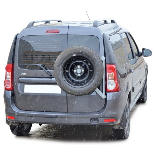 Кронштейн запасного колеса на дверные петли Лада ЛаргусУдобная откидная конструкция кронштейна (калитки) позволяет без труда получить доступ к к правой задней двери автомобиля (открывается вместе с правой дверью багажника и отдельно от нее). Установка калитки не требует доработки кузова автомобиля. Также кронштейн не мешает установке и использованию ТСУ (фаркопа) и не нарушает работу парктроников.